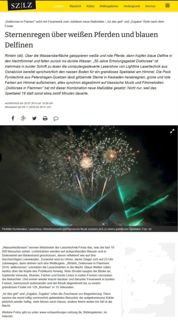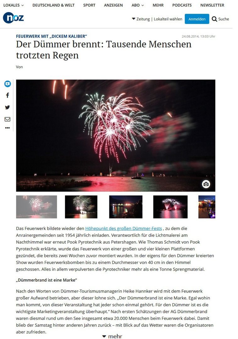 Musikfeuerwerk anlässlich des Jubiläums 50 Jahre Dümmerbrand Niedersachsen am 25. August 2012.
