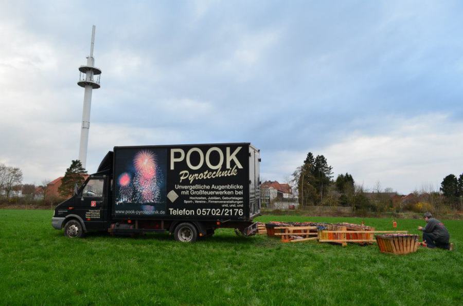 Wir haben u.a. Equipment und Abschussgestelle bereit gestellt, sowie den Transport und den Aufbau vor Ort begleitet.