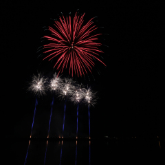 Herausforderung an diesem Abends war es für uns, drei unterschiedliche musiksynchrone Feuerwerke zu designen.